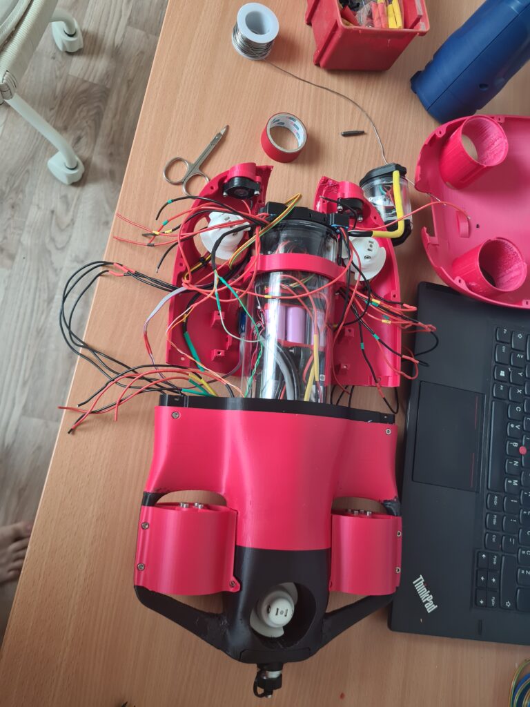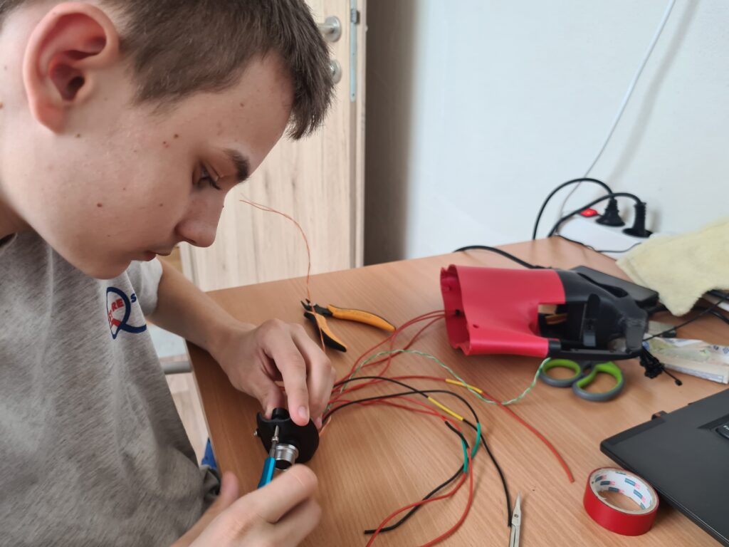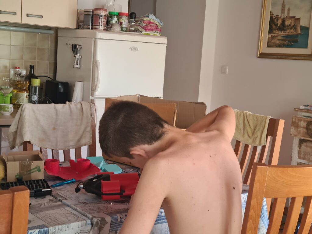 Now I handle about 99% of the prints myself. That 1% is my dad’s when he’s in a hurry—but usually, I have to reprint his stuff after school because he forgets to switch the settings (like printing with PLA instead of PETG). Still can’t help but laugh at that one. In spring 2023, I pitched an idea to my dad: let’s build an RC submarine, basically an underwater drone. He was totally on board and even showed me a course by two guys, Filip and Piotr from CPSdrone, who explained how to build and program one. With my dad’s help, I started learning soldering, epoxy basics, batteries, electronics—you name it.