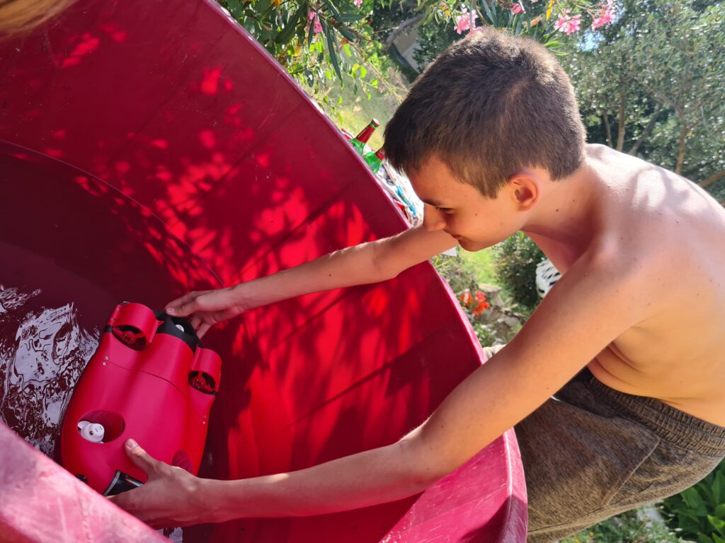 Fast forward to July 2023: we went on vacation to Rab, Croatia, where we finished building the drone and started testing. The first “mission” was hilarious—we used it to uncover one of my dad’s beer bottles.