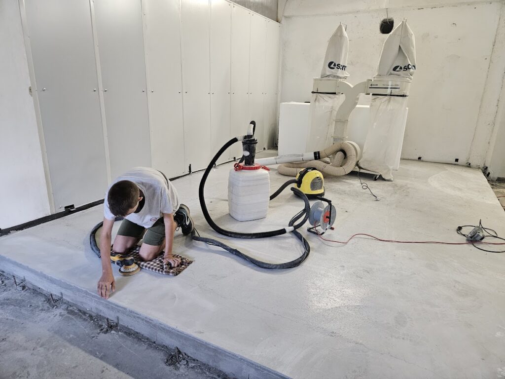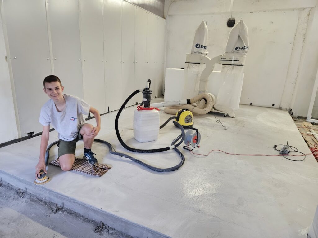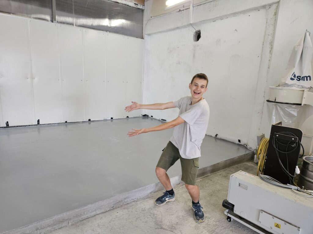 My dad has a big CNC and the old room was needed for a different purpose, and so a new room was made available to fit the CNC more comfortably, as its size was reduced in the old room. I helped him prepare the floor, pour the epoxy and spread it even.