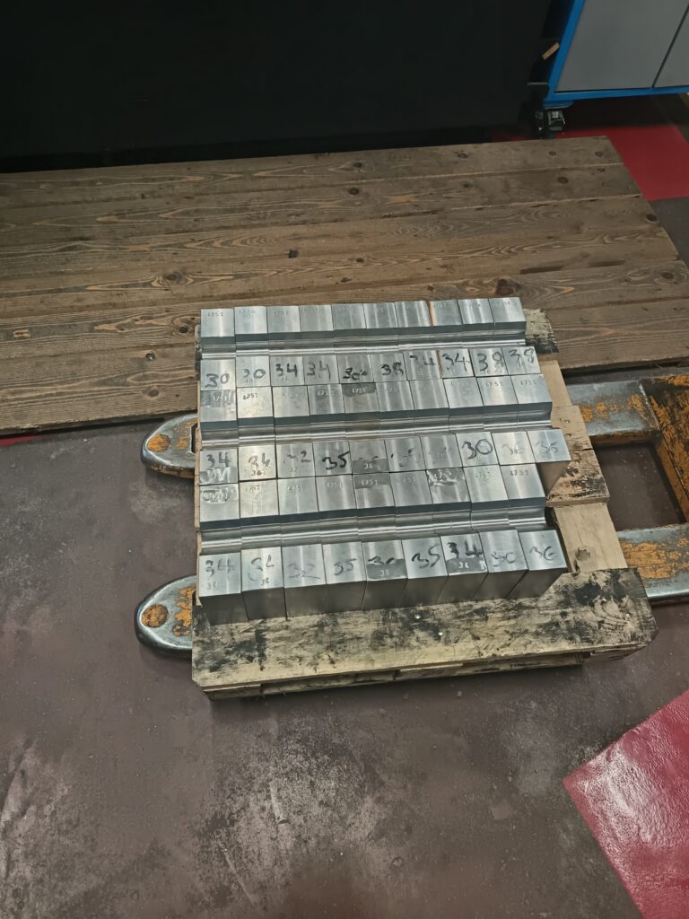 After a piece was finished I cleaned it from cooling oil and put it with its pair onto the pallet forklift. The objects were actually a part of a tool head for Unior if I’m not mistaken. I was helping make the general shape, and in Unior they later fix the tolerances and add more complex shapes onto it.